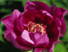 Цветок махровый, ярко-розовый с темно красным пятном в центре цветка. Диаметр 18 см. Высота куста 80 см. Листья крупные. кожестые, зелёные. |
