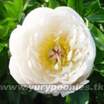 Цветок махровый, чисто белый,в центре лимонно-жёлтые тычинки.Рыльца светло-розовые с зелёным основанием d-20 см.h-80см.Листья светло-зелёные, крупные,стебли прочные. |